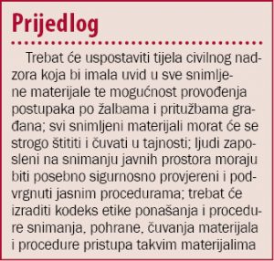 Premda možemo razumjeti i cilj i želju policije za maksimalnim učinkom, ipak ostaje činjenica da ni ovaj predloženi, a niti jedan od postojećih zakona, ne predviđa civilni nadzor nad snimanjem javnih površina, što je u zapadnoeuropskim zemljama uobičajena praksa. Postoji stoga objektivna bojazan da će razne regionalne i lokalne samouprave, policija i zaštitarske tvrtke, uspostavljati sustave audio i videonadzora nad javnim površinama, obavljati razna snimanja građana, a da oni s time neće biti upoznati na adekvatan način, a još će manje biti sigurni da te snimke njihovog kretanja i odnosa na javnim površinama neće biti zloupotrijebljene.
